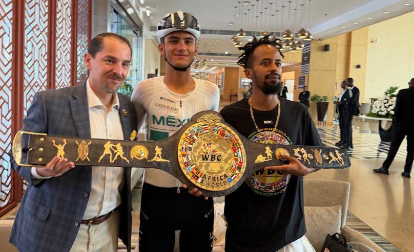 Ciudad de México, 26 de Septiembre.- El ciclista mexicano Isaac del Toro recibió un minibelt del WBC, enviado directamente por el presidente Mauricio Sulaimán, como muestra de apoyo y buenos deseos rumbo a su participación en la competencia de Ruta Élite que se celebrará este domingo en Kigali, Ruanda.