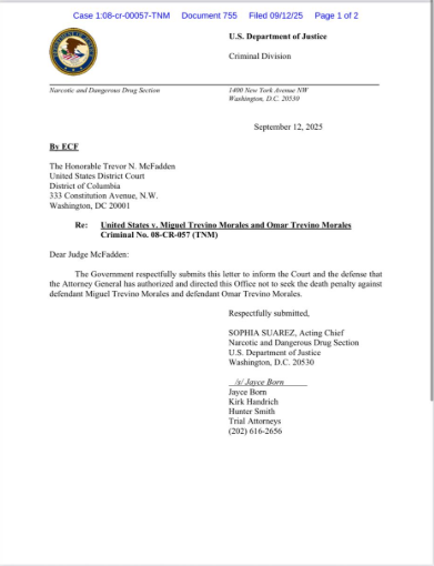 EU.- La fiscalía estadounidense informa al juez que no buscará la pena de muerte para los líderes de Los Zetas, los hermanos Miguel Ángel y Omar Treviño Morales, alias Z-40 y Z-42, acusados y presos en EE. UU.