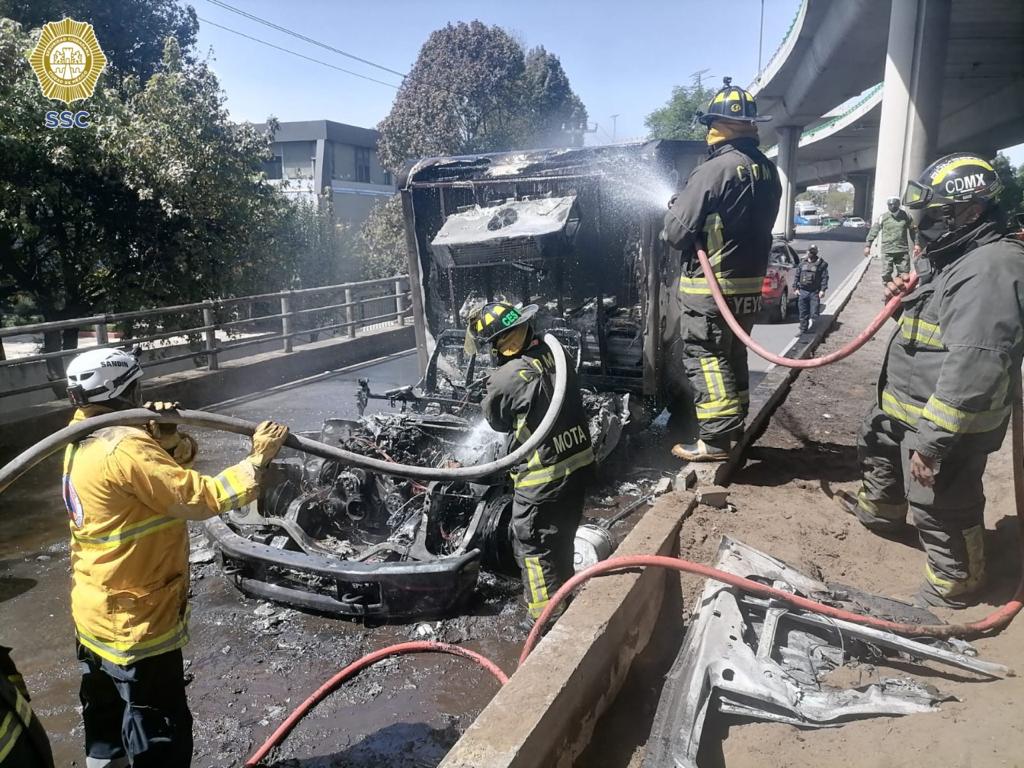 CDMX.- Fue en los carriles laterales de la avenida Manuel Ávila Camacho – periférico y la avenida del Conscripto, en la colonia Lomas de Sotelo, alcaldía Miguel Hidalgo, donde a través del monitoreo de las cámaras de videovigilancia de la Ciudad de México observaron una columna de humo, por lo que los policías de la Secretaría de Seguridad Ciudadana (SSC) se aproximaron al sitio.
