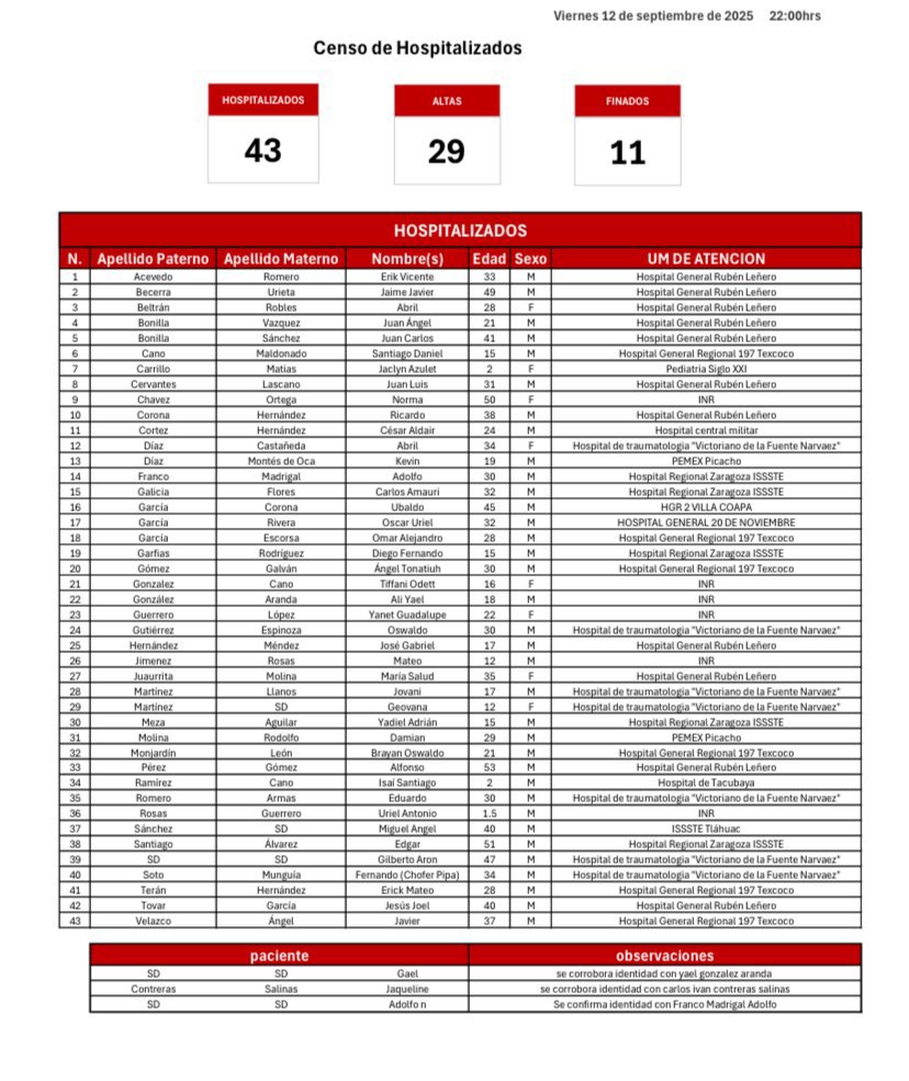43 personas hospitalizadas