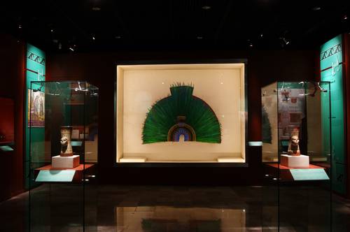 El Penacho de Moctezuma ha sido descrito como un tocado de oro de 24 quilates incrustado de piezas preciosas y conformado de más de 450 plumas de quetzal y cuya altura es de 116 centímetros por 175 de diámetro, valuado en 50 millones de dólares.