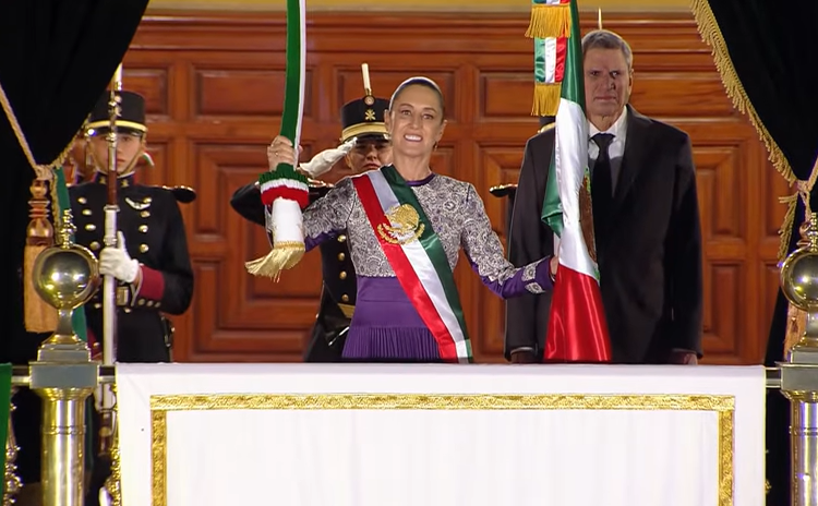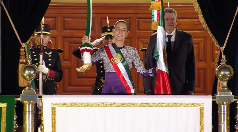 México.- Por primera vez en la historia del país, la ceremonia del Grito de Independencia, estuvo encabezado por una mujer, minutos antes de las 11 de la noche, la presidenta Claudia Sheinbaum, cruzó los diversos salones del Palacio Nacional para llegar al vestíbulo donde una escolta también por primea vez, en su totalidad estuvo conformada totalmente por mujeres la esperaba para entregarle el lábaro patrio.